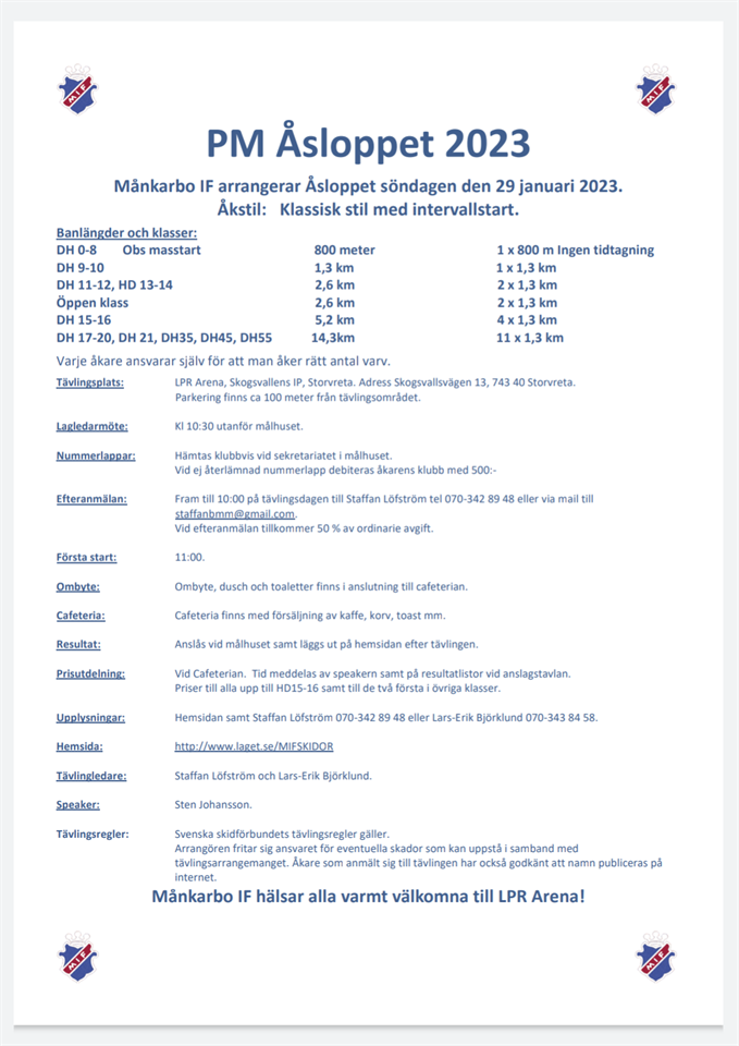 Hej! Här kommer PM för Åsloppet i Storvreta på söndag den 29 januari. PM och info finns också på Instagram @mankarboif ' PM Åsloppet klicka här Har ni svårt att öppna filen så hjälper det ibland att högerklicka och öppna i eget fönster. Välkomna! Skidsektion 27 jan 2023 0kommentarer