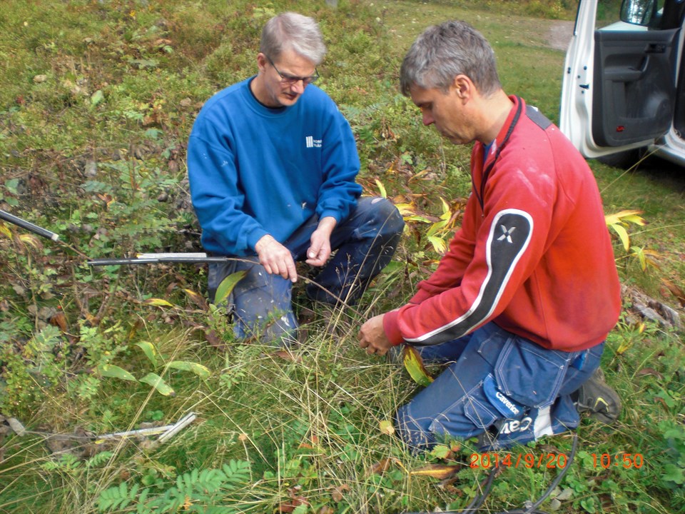 Lyset vid "Varggropen" har fixats i dag, Erik och Lars-Erik kom med på bilden då dom ordnar med staglinan. Bra jobbat.