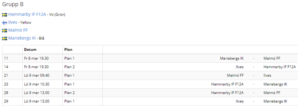Fredag 8e mars åker vi till Kristinehamns Arena för att spela LUXcup. Som vi ser fram emot detta! Av erfarenhet sedan tidigare vet vi att det kan kännas lite stort att komma till LUXcup. Det är en fin arena iordningställd särskilt för denna cup (vimplar, stor role-up för fotografering/intervjuer, sekretariet med medaljer och matchens lirare-utmärkelse, inspelningsutrustning uppställd, mm). För att hinna kolla in arenan, kanske kika lite kort på någon match och hinna landa i omklädningsrummet innan vi börjar värma upp och förbereda oss för match har vi valt att samlas på plats i Kristinehamns arena kl 18:00. För samåkning från Örebro samling omkring 17:00. Vi återkommer när vi vet vilka som kör och vilka som behöver åka med. Samlingstid lördag och söndag meddelas senare. Spelschema Fredag 8 mars 19:30 Mariebergs IK- Malmö FF Lördag 9 mars 10:30 Hammarby IF-Mariebergs IK 13:00 Ilves-Mariebergs IK Plus ytterligare matcher lördag och söndag (totalt sex matcher) beroende på placering i grupp B. Länk till spelschema (extramatcher) extramatcher Kostnader (swishas till 070-580 20 32) Spelaravgift 500 kr Lagavgift 3800 kr, 150 kr per spelare (resten står lagkassan för) Bensinkostnad ledare, 150 kr Totalkostnad: 800 kr (betalas in via Swish omgående) Vi behöver hjälp av 2-3 ytterligare bilar per resa. Eventuellt tillkommer ytterligare bensinkostnad för det. Meddela nedan vilka dagar ni tänkt köra och antal lediga platser för spelare. Vi hoppas såklart ha en stor supporterskara på plats. Tjejerna behöver bra mat och mellis under hela cupen. Kiosk med matigare alternativ finns i arenan. Vi har under hela cupen tillgång till ett eget omklädningsrum där varje spelare har en egen uppmärkt plats. Efter sista matchen på söndagen finns möjlighet att stanna kvar och bada om vi har bilar för att köra hem alla. Nu ser vi fram emot en riktigt härlig fotbollshelg tillsammans!