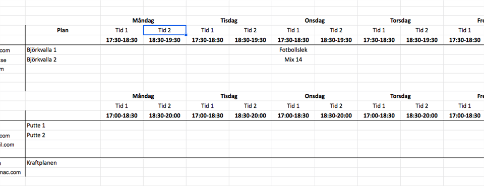 Nu går det undan och Myckle börjar torka upp. Vi har ännu inte bestämt när planerna ska krattas, men vi behöver börja planera för hur träningarna ska se ut. Eftersom vi ännu inte vill träffas (eller vill gör vi ju, men vi bör inte) så försöker vi lösa det online. Nedan länk tar er till ett gemensamt dokument där du kan se tiderna som finns tillfäliga. Pratar ihop er med den andra lagen i samma spelform, mailadresser finns i dokumentet. Ni får välja en tid i taget så att alla får en tid som funkar. Försök gärna göra det under aktuell vecka. TRÄNINGSTIDER /Styrelsen
