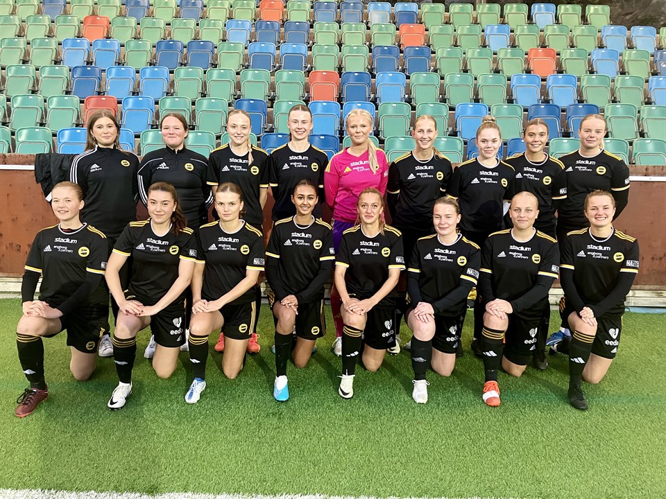 Inför året bästa publiksiffra (dryga 100) och en röststark hejarklack, säkrade Mossens BK division 3-kontraktet efter en stabil vinst mot Qviding FIF (U) på Valhalla IP på fredagskvällen. 4-2 slutade matchen där Carro stod för två mål och Tuva och Matilda varsitt. Det var ett laddat MBK-lag som tog tag i taktpinnen direkt. Efter kvarten spelad är Sofia nära att ge hemmalaget ledningen när hon sprang sig fri på Carros passning, bollen rullade dock lite för långt ut till vänster i straffområdet och Sofia fick en för snäv vinkel, skottet räddades av en utrusande målvakt. I stället blir det lite av en kalldusch när Hanna Magnander ger bortalaget ledningen i den 21:a minuten, ett välriktat skott strax utanför straffområdet som letar sig in i maskorna intill Lisas vänstra stolpe, 0-1. MBK behåller ändå trycket och ett kvitteringsmål ligger i luften. I den 31:a minuten kommer Carro rusande på högerkanten och lägger in bollen i straffområdet, Tuva möter perfekt och trycker in bollen i mål, 1-1 och kvitterat. Tjejerna trummar på och två minuter senare placerar Carro bollen i nättaket efter att Sofia sprungit sig loss på högerkanten och levererat ett fint inlägg, 2-1! Nu har MBK momentum och tre minuter senare är det återigen dags för måljubel. Matilda pressar Qvidings mittback högt upp i banan, vinner duellen och testar med ett skott strax utanför straffområdet, bollen letar sig upp i närmsta krysset via målvaktens ena hand, 3-1! Målfyrverkeriet fortsätter, i anfallet efter är det dags igen, denna gång för bortalaget. Ett inlägg från höger knäas in i mål av bortalagets duktiga Brooklyn Coleman Sandgren, 3-2 och reducerat. Inga mer mål produceras i första halvlek och vi går till halvtidsvila med en uddamålsledning. Efter en jämn inledning på andra halvlek tar hemmalaget över tillställningen och efter kvarten spelad utökar MBK till 4-2, en outtröttlig Carro vinner en närkamp ute på vänsterkanten strax utanför straffområdet, tar ett par steg in i banan och curlar upp bollen tillräckligt högt för att inte målvakten ska nå den, bollen seglar snyggt in närmaste krysset och MBK har helt plötsligt en tvåmålsledning att spela på. Resten av matchen kontrollerar vi på ett säkert sätt och bortalaget kommer inte längre än till någon halvchans. Matchen slutar 4-2 och ett stort jubel utbryter både på plan, bänk och läktare, inte så konstigt då kvällens resultat innebar att Mossens BK säkrar en plats i Division 3 även nästa säsong, trots att en match återstår av serien. Stort grattis till hela truppen, ni har alla gjort en riktigt bra säsong. Nu avslutar vi snyggt i sista matchen mot Ytterby IS nästa söndag, fram till dess njuter vi av segerns sötma! Bra jobbat alla!