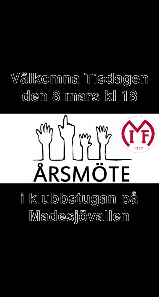 Vi hälsar alla våra medlemmar välkomna på Årsmöte 🔖 📍Tisdagen den 8 mars 📍kl 18:00 📍i klubbstugan Vi avslutar mötet med fika, varmt välkomna! Madesjö IF 9 feb 2022 0kommentarer