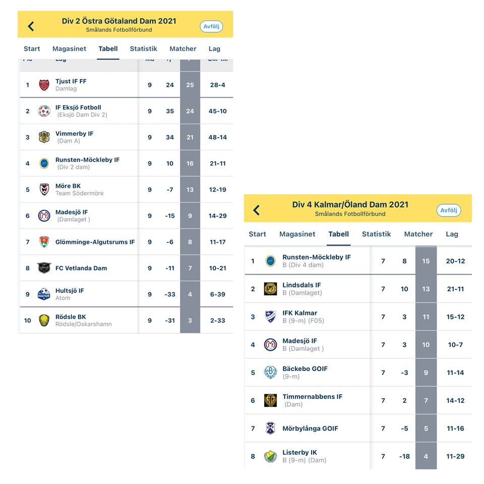 Nu i helgen spelar damlaget A och B bland sina sista matcherna för säsongen 2021. * Så här säger Tränare Martin om B-laget: 2 matcher kvar och vi har tätkänning. Synd att vi inte knep 3 poäng i Mörbylånga då hade vi varit med och slagits om en första placering på allvar. Trots olika uppställning och trupp inför varje match har vi ändå varit stabila och haft bra energi och inställning överlag. Fokus ligger ändå på att göra bra prestationer som lag men lika viktigt ska det vara att man känner att man kan utvecklas individuellt. * Så här säger Tränare Johan om A-laget: Jag tycker vi har visat att vi hör hemma i div2. Prestationsmässigt borde vi haft 10-12 poäng men det gäller och knyta säcken i matcherna. Möjligen lite orutin och lite för mycket respekt i vissa matcher. Vi har kommit en bra bit på vår resa med och spela den fotboll vi vill. Trots några tunga tapp från fjolåret tycker jag truppen har utvecklats både som kollektiv men också många som tagit stora kliv individuellt under säsongen. Sen finns det såklart alltid saker att slipa på. Smedby tjejerna som anslöt i somras har verkligen lyft hela gruppen. Nu har vi 3 matcher kvar av säsongen och kommer göra allt för att säkra kontraktet för spel I div2 nästa säsong. Närmst möter vi Tjust som leder serien och de ser oss säkert som en mumsbit med tanke på bottennappet som hände förra helgen pga diverse orsaker. Det ska vi såklart utnyttja till vår fördel. Efter det väntar 6 poängsmatcher mot både Rödsle och Hultsjö. Kommer vi upp i den nivån jag vet att vi besitter är jag övertygad om att det spelas div2 fotboll på Madesjövallen även nästa säsong! Madesjö IF 24 sep 2021 0kommentarer