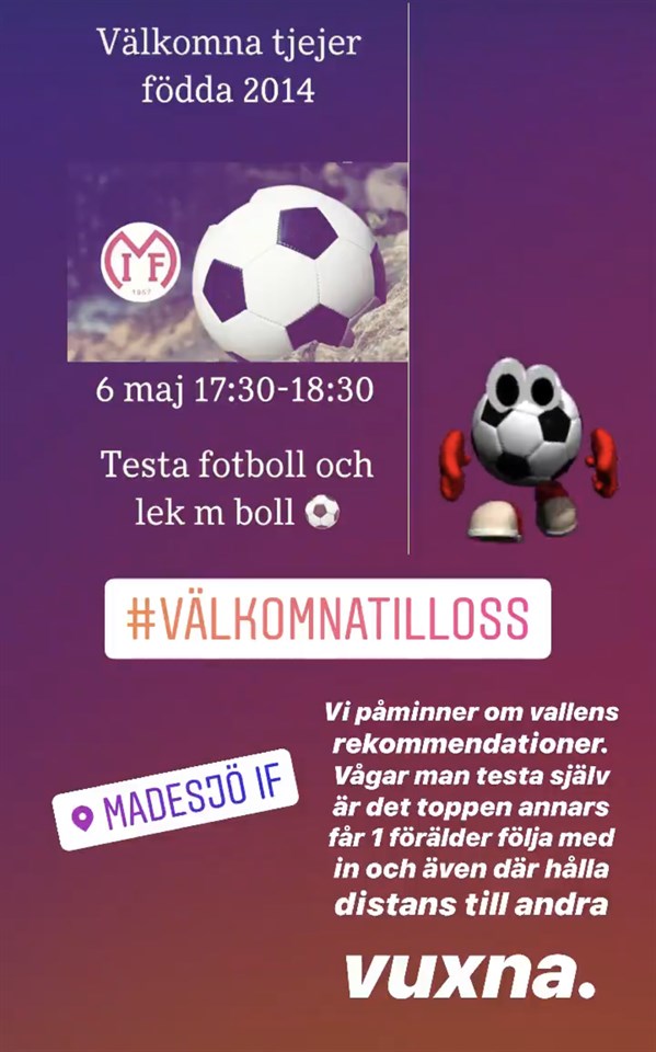 Då var det dags för tjejer född 2014 att testa på fotboll. 5 onsdagar med start 6 maj kommer Linda och Jennie från klubben ta emot fotbollssugna tjejer! Madesjövallen är platsen, tiden 17:30-18:30 och har man benskydd är det toppen annars behövs bara gymnastikkläder. Välkomna! ?? #madesjöif #uppstartflickor2014 #välkomnatillmif #fotbollsglädje Madesjö IF 14 apr 2020 0kommentarer