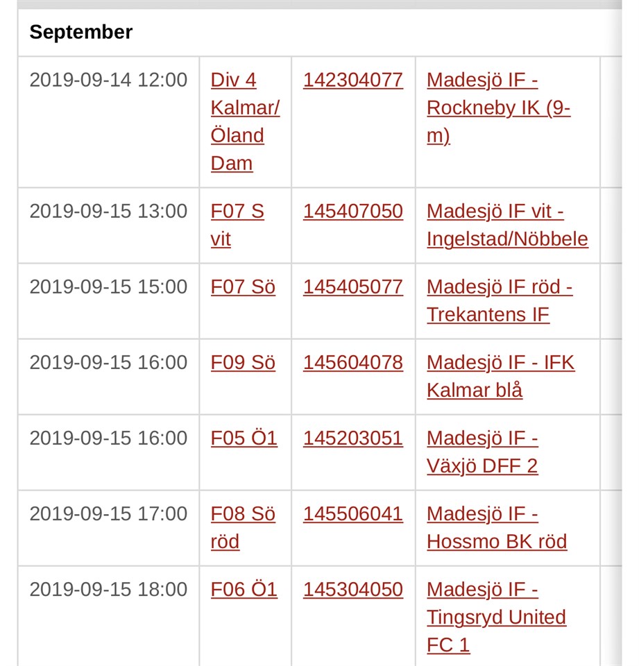 Nu ni går vi in i sista veckan med matcher här på vallen! V39, i veckan tränas de på som vanligt, ha koll på er laget sidor 👌 till helgen är det sista matcherna. Först för @madesjoifdam hemma och borta kl 12:00, spännande! kl 15:00 tar @madesjoif_f16 emot Visby där det skall ske dubbelmöte lör/sön. Söndag spelar F-09 sin sista match borta i Lindsdal, F-16 Visby hemma kl 12:00 och F-07 avslutar säsongen på vallen då dom tar emot Lindsdal kl 16:00 välkomna och heja fram våra tjejer och kan ni inte komma följ gärna i appen ”min fotboll” där våra ledare är väldigt duktiga på att uppdatera! 🙌🙌 #madesjöif #slutetpåsäsongen #sistamatcherna #vadhänderpåvallen #forcavårarödvitagäng #välkomnaochheja Madesjö IF 23 sep 2019 0kommentarer
