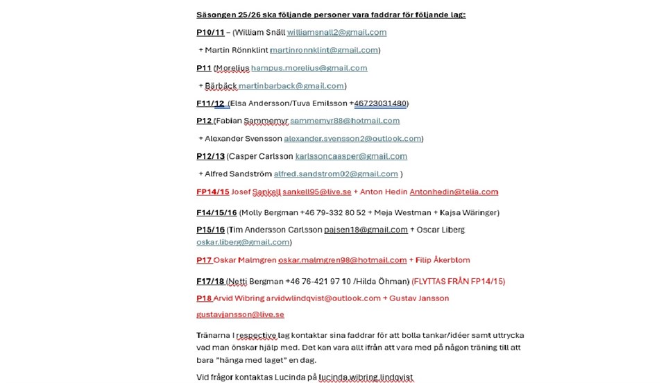 Se bifogad information kring faddrar för säsongen!