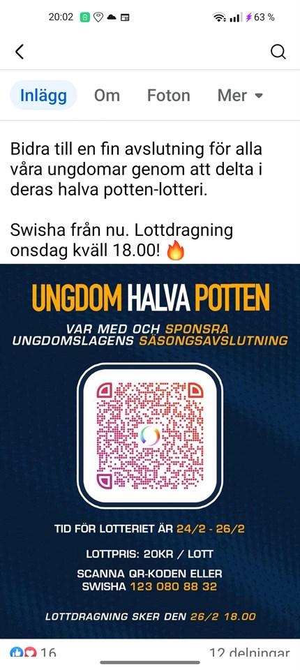 Hej. Var snälla och dela informationen i Era lag om att vi dragit igång ett halva potten lotteri till förmån för en avslutning för ungdomarna. Givetvis får man köpa så många lotter man vill och mer information finns att läsa på MAIS hemsida. Dragning sker på onsdag kl 18:00 Ungdomssektionen Ungdomsledare 24 feb 0kommentarer