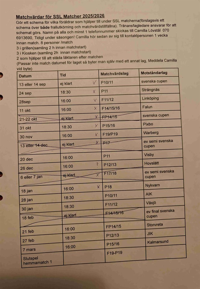 Hej. Lägger strax upp två bilder på schemat för när ni är matchvärdar här på Ungdomsledarsidan Mvh Camillla. Ungdomsledare 19 nov 0kommentarer