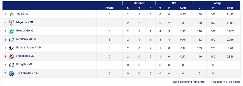 Dubbla vinster för herrarna efter första två matcherna. Med två vinster ligger Majorna tvåa i serien bakom Bjärke som leder på bättre setskillnad. Detta kan bli en oerhört spännande serie denna säsong, speciellet om du håller på Majorna VBK. Glöm inte att stötta killarna på https://www.sponsorhuset.se/majornavbk/ Tack för ert stöd.
