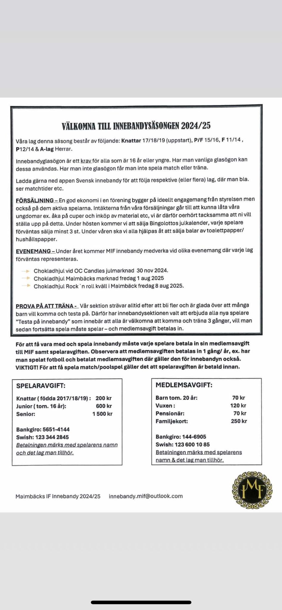Klicka på bekräftelselänken i det mejl vi skickat dig för att börja ta emot uppdateringar från Malmbäcks IF Dam-lag.