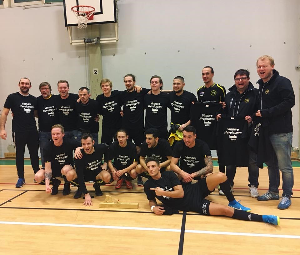 Under fredagskvällen var det dags för den traditioonsenliga Hyvelcupen i Bodafors sporthall. MIF spelade i grupp B som även bestod av Stensjöns IF, Nässjö FF och Forserums SK. I grupp A spelade Bodafors SK, Solberga GOIF, Annebergs GIF och Holsby SK. Sporthallen var, som den alltid brukar vara denna kväll, proppfull med supportrar som fick se många spännande matcher. Nedan kommer en kort sammanfattning av kvällen. MIF - Stensjön 2-1 Kvällens första match blev en tuff drabbning mot Stensjön. En match som bjöd på målchanser åt båda hållen men MIF drog ändå det längsta strået. MIF satte ledningsmålet med endast någon minut kvar av matchen och lyckades hålla undan och ta en första viktig trepoängare. Målskyttar: Filip & Anton MIF - Nässjö 4-2 Kvällens andra match skulle också bli en av kvällens tuffaste matcher. Nässjö började matchen bäst och pressade MIF. Men bra målvaktsspel räddade oss från underläge och tillslut började även vårt spel ge utdelning. Vi vinner tillslut matchen med betryggande 4-2. Målskyttar: Filip, Rama, Martin, Anton MIF - Forserum 3-0 Tredje och sista gruppspelsmatchen är inte vår bästa match för kvällen, men vi gör vad som behövs och vinner matchen säkert. Stundtals blixtrar vi till och visar upp fint, fint futsalspel. Målskyttar: Tobbe, Linus, Rebaz Semifinal MIF - Solberga 5-1 Semifinal-dax och nerverna börjar krypa fram, iallafall på läktaren. De gul-svarta på planen visar dock inga spår av nervositet utan börjar matchen med fart och fläkt från första minut. MIF ger egentligen aldrig Solberga någon chans i matchen utan kontrollerar den i alla 20 minuter. En skön seger och vi är vidare till final!! Målskyttar: Tomo, Martin, Linus, Jacob, Rama Final MIF - Stensjön 9-5 Finalens motståndare blev Stensjön som hade vunnit sin semifinal mot Anneberg i en riktigt spännande och jämn match. Förväntningarna på finalmatchen var att det skulle bli en tuff match, så som gruppspelsmatchen mot de vit-svarta hade varit. Men så blev inte riktigt fallet. Man kan verkligen säga att MIF var bäst när det gällde denna kväll. Det kändes som att de gul-svarta höjde sitt spel med ett antal nivåer direkt när domaren blåste igång matchen. Därav tog MIF ledningen med 2-0 när endast 3 minuter av matchen hade gått?! MIF bjöd på uppvisning och visade upp vilket bra futsallag man är. Icke att förglömma kämpade Stensjön på bra och lyckades näta fem gånger, men det räckte inte denna kväll. MIF vann finalen rättvist och fick ta med hyveln hem till Önnemo! Målskyttar: Anton, Toffe 2, Filip, Rama 3, Martin Vi tackar för denna kväll och njuter av cupsegern. Vi ser samtidigt fram emot WR-cupen som spelas i Nässjö 27/1. Forza MIF!