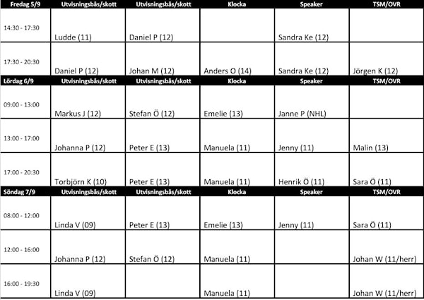 Jag kan nåt pass utvisningsbås, lägg in mig på lördag och ett söndags pass eller ev senare fredagspass