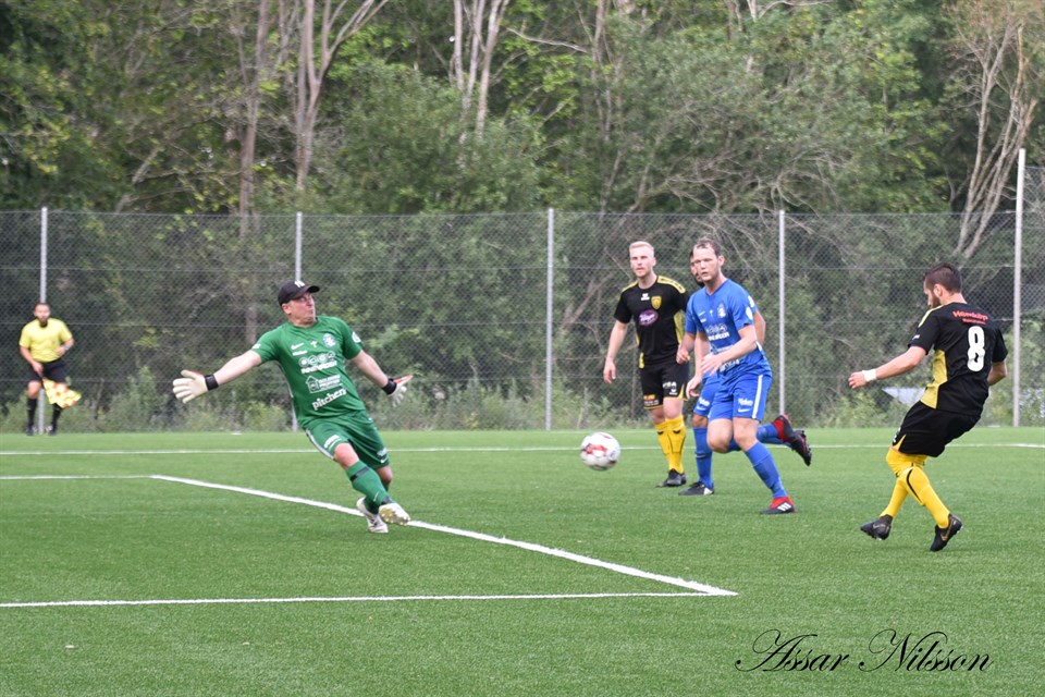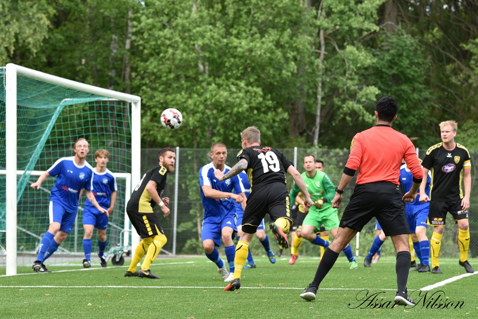 Malmköpings IF – Nykvarns SK 4 – 0 ( 2 – 0 ) 1 – 0 24:e min Sebastian Rombing (straff) 2 – 0 31:a min Joel Wikelind 3 – 0 55:e min Filip Nilsson 4 – 0 88:e min Niklas Pettersson MIF:s startelva: Adam Vallström - Lester Sarino, Lennart Johansson, Tobias Nilsson Lindström, Joel Wikelind (65) - Johan Vallström, Erik Gustafsson, Sebastian Rombing (K) (77), Oskar Falk - Filip Nilsson (87), Niclas Pettersson Avbytare: Ahmed Abdi Mahamud, Martin Törnhjelm (65), Sebastian Ravnborg (77), Filip Broström (87) Det blev en enkel seger mot Nykvarn. Malmköping hade full kontroll på matchen från start till slut. Gästerna kunde inte bjuda upp till kamp och försvarade sig mest på egen planhalva. Adam Vallström i målet måste haft en av sina lugnare dagar. Förutom ett par enklare ingripanden i mitten av andra halvlek hade han bara bakåtpassningar att hand om. Efter en handfull halvchanser kund MIF ta ledningen i den 24 min på en säkert slagen straff av Sebastian Rombing. Detta efter att Erik Gustafsson blivet fälld. Joel Wikelind var väldigt offensiv under första halvlek och fick kröna det med ett snyggt 2 – 0 mål. Framspelad av Oskar Falk. I början på andra halvlek ordnade Filip Nilsson säkert 3 – 0. Fint framspelad av Joel Wikelind. Slutresultatet 4 – 0 fixade Niklas Pettersson efter försvarsslarv. Nykvarn packade ihop sig i straffområdet så det var svårt att få till klara målchanser. Förutom sista kvarten. Sebastian Ravnborg hade två jättechanser att göra mål. Nykvarn hade tydligen en spelande tränare och ingen lagledare. Det är inte ofta man bara ser spelare på bänken i div. 4. Arne kunde räkna in 116 personer på läktaren. Nästa helg blir det värre! Då är det match mot tabelltrean Triangeln i Eskilstuna. Assar Nilssons bilder från matchen kan Ni se via nedanstående länk. Assars Foto