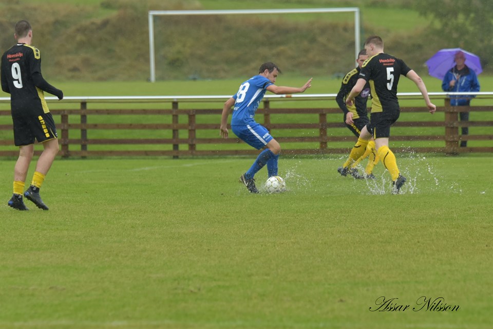AC Primavera – Malmköpings IF 5 – 3 ( 5 – 2 ) 1 – 0 3:e min Daniel Karlsson 1 – 1 9:e min Oskar Falk 2 – 1 27:e min Sezar Al-Hakim (straff) 30:e min Utvisning Sezar Al-Hakim 2 – 2 33:e min Sebastian Rombing (frispark) 3 – 2 34:e min Daniel Karlsson 4 – 2 43:e min Daniel Karlsson 5 – 2 44:e min Magnus Käll 5 – 3 73:e min Sebastian Rombing (straff) 75:e min Utvisning Anton Scheikl (två gula kort) Malmköping startade enligt följande: Adam Wallström - Lester Sarino, Lennart Johansson, Tobias Lindström, Filip Broström (38) – Johan Wallström , Sebastian Rombing, Erik G Wallström, Oskar Falk – Filip Nilsson , Daniel Einarsson (72) Avbytare: Niklas Pettersson (72), Anton Scheikl (38), Joel Wikelind, Edvin Hyström och Ahmed Mahamud Nu är det avgjort. Det blir Primavera som tar kvalplatsen till division tre. Det var en svårspelad plan som mötte lagen på Skogsängens IP. Regnet hade gjort att det stod vatten på delar av planen, så passningsspelet blev ibland lite chansartat. Primavera chockstartade matchen och var när att göra 1 – 0 redan i den första spelminuten när deras främste målgörare Sezar Al-Hakim var på väg att rinna igenom. Men en rutinerad tröjdragning av Lennart Johansson gjorde att chansen rann ut i sanden. Primavera fick dock utdelning redan två minuter senare på nick efter frispark. Malmköping kunde kvittera till 1 – 1 redan 6 minuter senare genom Oskar Falk, som slog in returen efter att Johan Wallström nickat i stolpen på ett inlägg från Filip Nilsson. Primavera kunde återta ledningen på straff efter en olycklig hands i Malmköpings straffområde. Då kändes det inte bra! Primavera hade många hörnor och inlägg i början av matchen. Malmköpingsförsvaret hade svårt att få grepp på Primaveras skyttekung Sezar Al-Hakim. Men allt ändrades i den 30:e minuten när Sezar Al-Hakim fick rött kort efter en attack på Sebastian Rombing. När sedan Sebastian Rombing kvitterade till 2 – 2 tre minuter senare på en väldigt fint slagen frispark kände man sig optimistisk. Daniel Einarsson var mycket nära att ge Malmköping ledningen två minuter senare. Men vad hände sedan? Primavera kunde med 10-man göra tre mål på 10 minuter. Detta efter väldigt passivt försvarsarbete från Malmköpings sida. Här avgjordes matchen! Det var inget lätt läge att gå ut till andra halvlek med ett 2 – 5 underläge. Man gjorde ett helhjärtat försök att vända matchen. Primavera backade lite och Malmköping tryckte på. Förutom reduceringen till 5 – 3 på straff, efter att Filip Nilsson fällts, skapade man väldigt lite. Primavera hade ett par mittbackar som tog hand om det mesta. Primavera skapade också flera chanser och hade inte Adam Wallström storspelat hade deras målskörd blivit större. Bäste spelare i Malmköping var Adam i målet. Malmköping har gjort en kanonsäsong. Den bästa på väldigt länge! Synd att den inte fick krönas med ett kval till division tre. Det är bara att gratulera Primavera och önska dem lycka till i kvalet. Där står Assyriska United, Boo FF samt Enhörna för motståndet. Assar Nilssons bilder från matchen kan Ni se via nedanstående länk. Assars Foto
