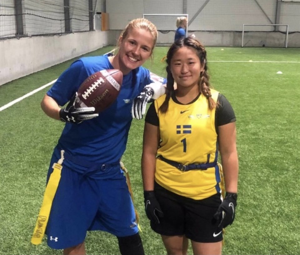 Den 14 augusti är det seriepremiär för flagglaget mot AIK, SMM och Uppsala 86ers. Det är första omgången i SM serien 2021. Den 15-18 augusti har vi uppstartsläger för tre av våra tackle lag samt vårt flexlag. U11, U11 flex, U13 och U15. Känner ni någon som spelat förut och vill börja igen är det ett perfekt tillfälle. Vi samtränar de olika lagen och gör dem redo för säsongen. Vi har tagit dit gott om externa tränare för att göra det till en kul upplevelse. Alla lag har idag tillräckligt med spelare, men U15 skulle behöva vara fler eftersom många håller på med fler aktiviteter och inte kan vara med på alla matcher. Framförallt behöver vi fler QBs och linebackers och till viss del Oline. Så känner ni någon som är intresserad, be dem höra av sig till mig på junior@be-maniacs.se. Är de med på uppstartslägret kommer de få spela i år. Bilden: Linn kom med i VM truppen 2021. Ser ni henne så passa på att gratulera