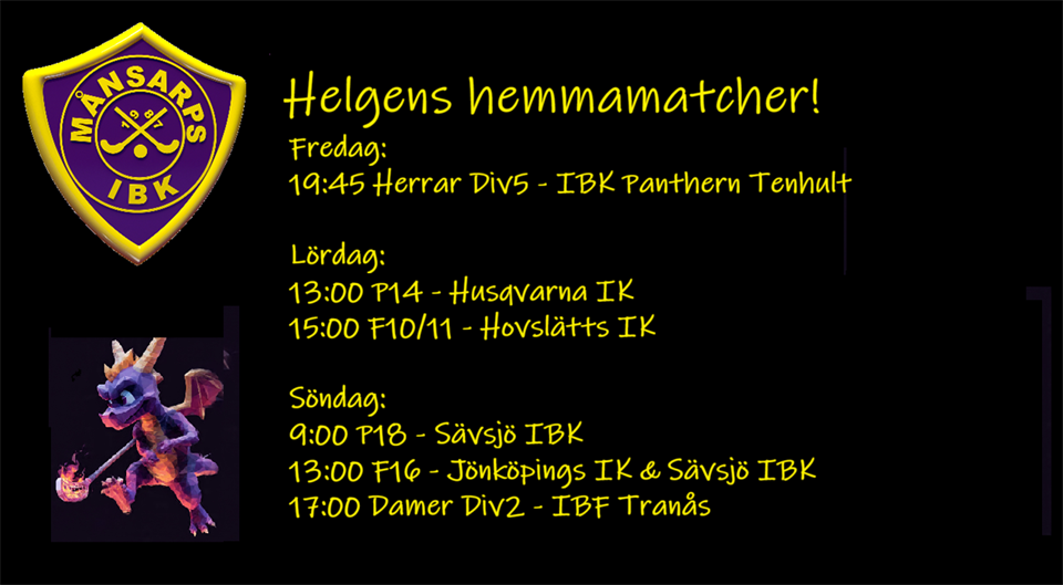 | B-lag Herrar IBK Panthern Tenhult B (hemma) | 28 nov, 19:45 |