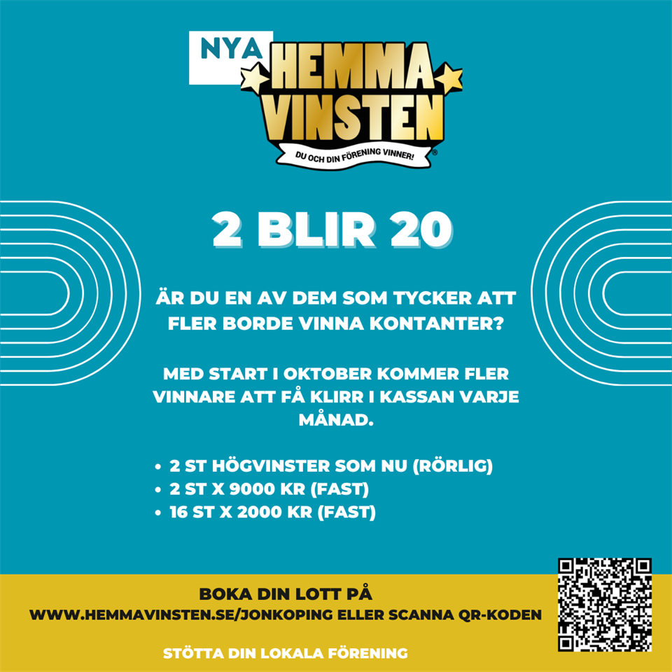 Nu närmar vi oss också Premiär av Nya Hemmavinsten där 20 lottköpare kommer vinna kontantvinster varje månad. Hemmavinsten Styrelsen. P-10 6 sep 2023 0kommentarer