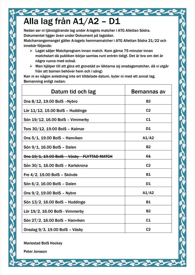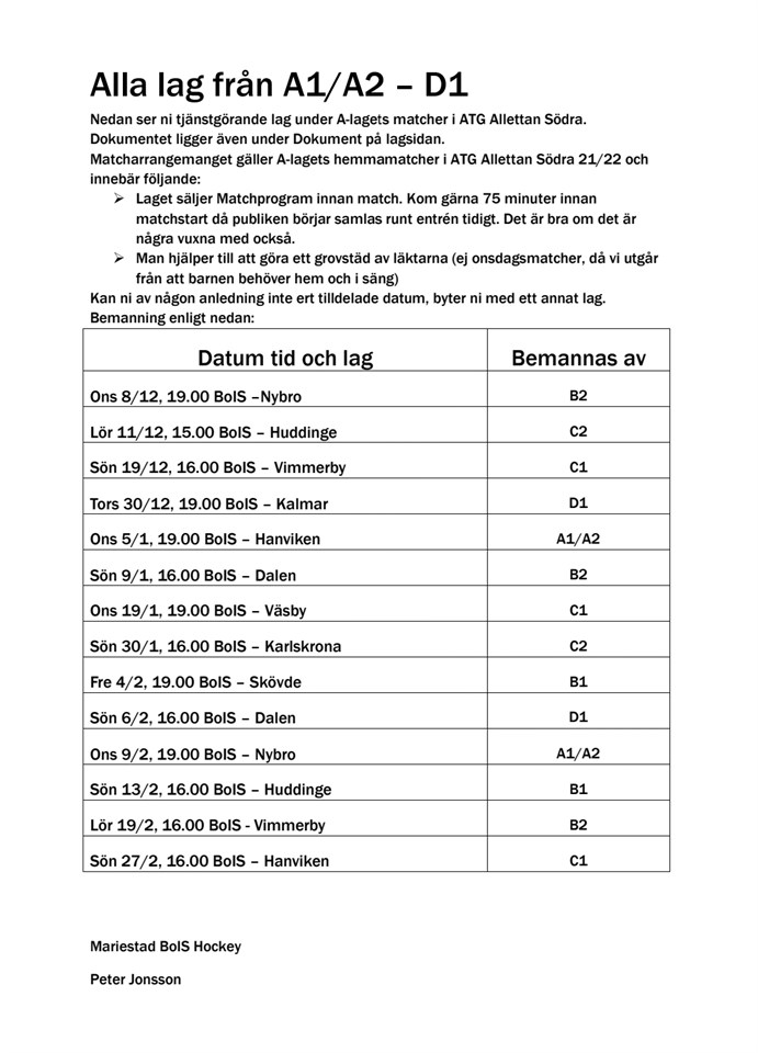 Nu finns schemat för försäljning av matchprogram under a-lagets matcher i Allettan under dokument A-pojk 6 dec 2021 0kommentarer