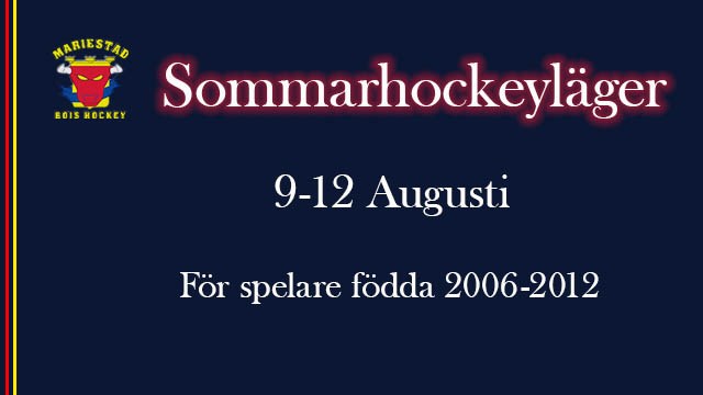 Glöm inte att anmäla er till Sommarhockeylägret! Sista anmälningsdag är 30/6. Mer information och länk till anmälan https://www.laget.se/MariestadBoISHC/News/6663563/Sommarhockeylager-2021