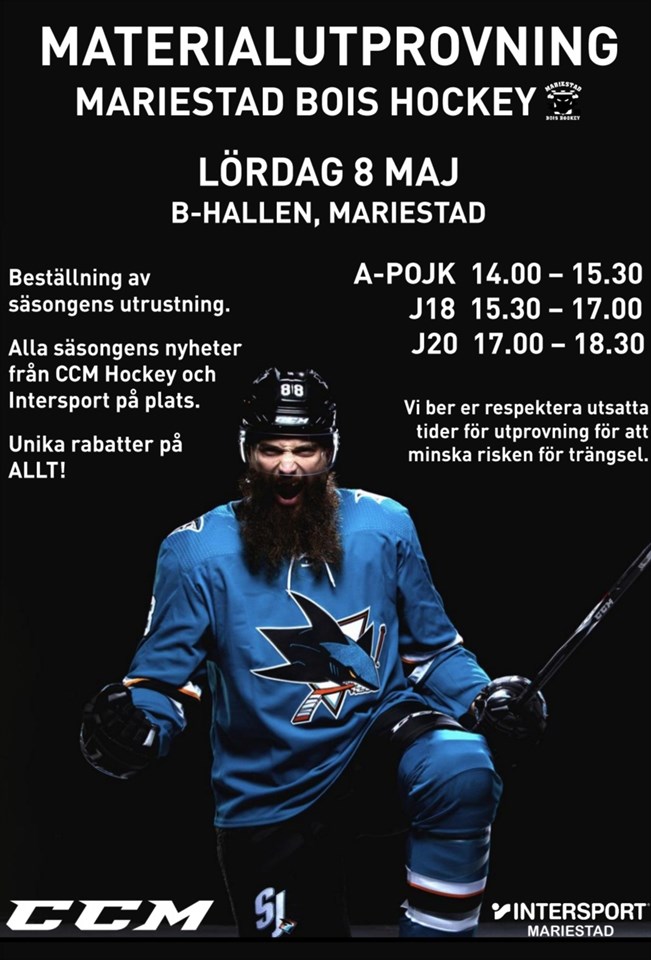 Lördagen den 8 maj är det äntligen dags för materialutprovning inför säsongen 2021/2022 för J20, J18 och A-pojk. Våra samarbetspartners Intersport och CCM Hockey kommer att vara på plats för att visa upp all utrustning för utprovning och beställning. Alla säsongens nyheter kommer att vara på plats, även känt som ”julafton för hockeyspelare”. Hålltider: A-Pojk 14.00 - 15.30 J18 15.30 - 17.00 J20 17.00 - 18.30 Vänligen respektera och håll er till dessa utsatta tider för utprovning. Det gör att vi kan minska risken för trängsel och smittspridning. Välkomna! A-pojk 10 apr 2021 0kommentarer