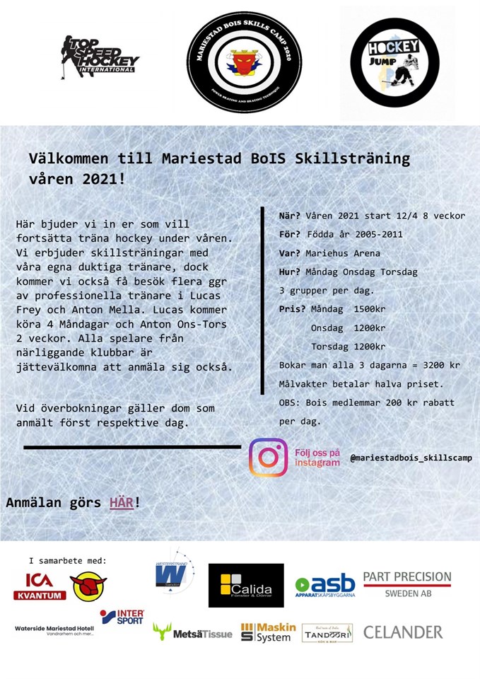 Är ni sugna på att träna hockey längre under våren? Nu erbjuder vi er födda 2005-2011 tränings i 8 veckor från och med 12/4. All information finns i bilden. Anmäl dig via följande länk KLICKA HÄR Faktura kommer via mail A-pojk 8 feb 2021 0kommentarer