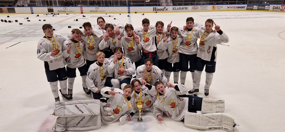 I mellandagarna tog U16 DM-guld och U15 ville inte vara sämre så i helgen bärgade de ytterligare ett DM-guld till A-pojk. Jag har pratat med två av killarna som spelade i helgen, forwarden Erik Jonsson och målvakten Jonathan Tarning Lans. -Grattis till guldet! - Tack tack! - Vi börjar med lördagens matcher i Skara, seger mot Skara med 7-0 (Jonathan stod den matchen) och seger mot Grästorp 3-2. Hur var den dagen? - Bra och rolig. - Hur var matcherna då? - Vi spelade bra, tappade lite mot Grästorp kanske. - Ni hade med 4 stycken spelare som är ett år yngre än er, brukar ni ha med U14-spelare även i serien? - Ibland brukar vi låna upp några så det var inte helt nytt. - Söndagen så var det spel i Mariehus Arena. Vi börjar med semin mot Borås seger 6-2. (Den matchen stod Jonathan) - Vi spelade bra, vi spelade som ett lag. Spelade ganska enkelt. - Du Jonathan, hur ser du på matchen ur ett målvaktsperspektiv, fick du bra hjälp? - De skötte sig bra. Det var väl ett mål, friläget, där backarna tappade det lite men sånt händer ju. - Finalen mot Skövde (seger 2-1). Vad säger ni om matchen? - Vi kommer in som det starkare laget och spelar bättre. Tröttar ut dem, de hade inte så många spelare. - Ni leder med 2-0 efter första (DM spelas i 2 perioder), sen gör de ett mål i andra. Du Jonathan som står i båset och inte kan påverka matchen, hur kändes det där? - Det var lite jobbigt men det var bara att pusha på laget. - När signalen gick, känslan där? - Skönt, väldigt skönt. Kul också. - Nu har A-pojk fixat en dubbel mot Skövde i finalerna i DM. - Det är kul, det känns jätteskönt.