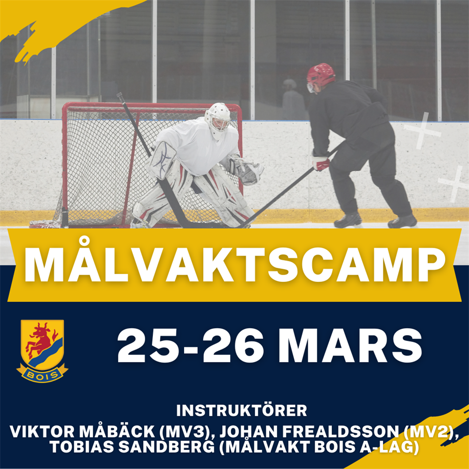 Mariestad BoIS anordnar målvaktscamp under påsklovet vecka 13 (25-26 mars 2024). Campen är uppbyggd med tre ispass per dag, ett målvaktsanpassat-fyspass och ett målvaktsanpassat-teoripass. Vi riktar oss mot målvakter födda -08 -14 Ledare: Viktor Måbäck (Utbildad MV3) Johan Frealdsson (Målvaktstränare BoIS A-lag, utbildad MV2 tränare) Tobias Sandberg (Målvakt BoIS A-lag) Under campen ingår lunch och mellanmål. Pris: 1995:- Då ingår lunch och mellanmål. Bokningen är bindande. Vid eventuell sjukdom eller skada återbetalas hela avgiften, förutom en administrationsavgift på 500kr, mot uppvisande av läkarintyg. Faktura skickas vid mottagen anmälan och ska vara betald senast 25/3-24 Anmälningslänk finns HÄR