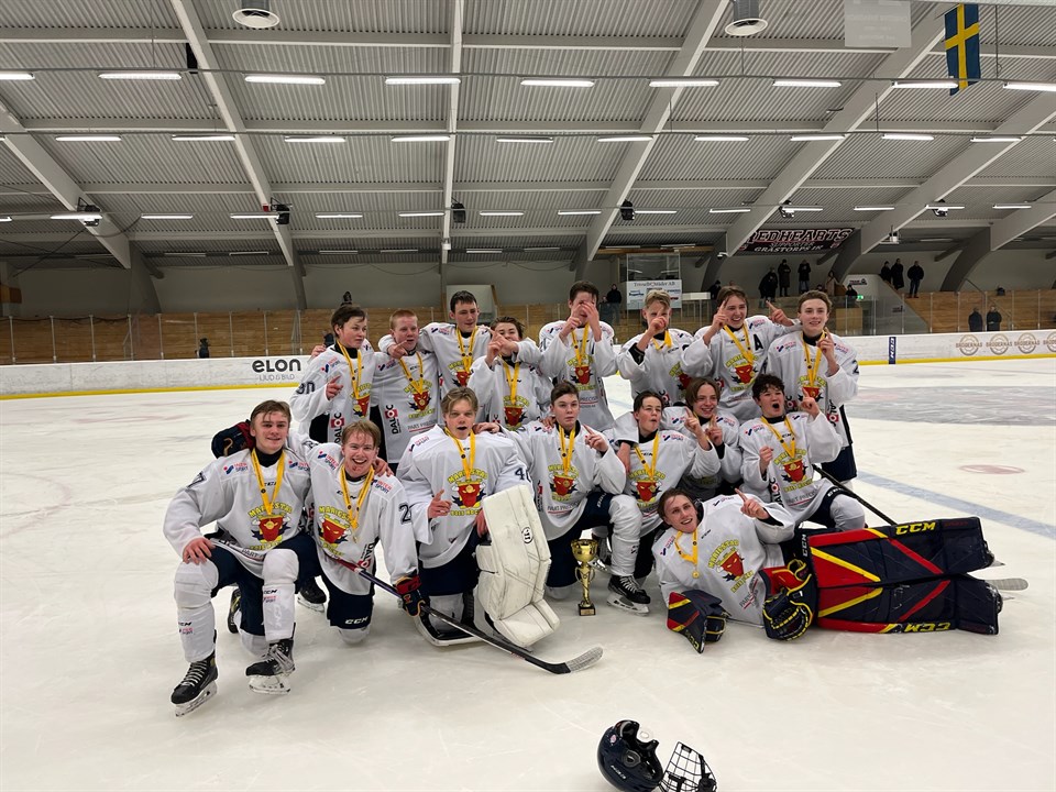 Den 20 december spelades finalen i U16 DM i Åse & Viste Arena i Grästorp mellan Mariestad BoIS HC och Grästorps IK. BoIS vann matchen med 1-6 (0-2,0-2,1-2). Målskyttar i finalen var Helmer Wallqvist, Alvin Bergström, Ville Gustafsson, Lucas Göthe, Robin Larsson och Vilgot Andersson. Vi tar det från början dvs den 12/11 och 22/11 då killarna slog ut förra årets DM-mästare Ulricehamn i ett dubbelmöte. De vann hemma med 3-1 och förlorade på straffar borta med 3-2. Därefter väntade Skara IK på bortaplan i semin och det blev en spännande match som BoIS vann med 0-1. Jag har pratat med tränare Norton Gren och kaptenstrion Ville Gustafsson, Helmer Wallqvist och Liam Ekeroth om DM och framförallt om finalen. Norton ni vann DM, vad har du att säga om det? Otroligt kul för det första. Ett kvitto på att vi har gjort det bra och att vi har utvecklats. Vi har mött bra lag som vi har vunnit mot välförtjänt. Ulricehamn slog ni ut i gruppspelet och Grästorp i finalen. Lag som ni inte vunnit mot i serien i år. Ja precis och Ulricehamn vann ju DM i fjol i den här ålderskullen och som du sa Grästorp har vi förlorat mot i serien. Det blir något annat i DM, om det nu kan bli det så blir det lite mer på allvar, att man som spelare är beredd att göra vad som helst för att laget ska vinna även om man kanske själv hamnar i skuggan av någon annan. Men det är man beredd att göra. Ja i ett DM är det vinna eller försvinna till skillnad mot i serien. Ja rent krasst så spelar man “bara” om en serieseger i serien men i DM så blir det ju kval till SM nu. Där vet vi inte vilka vi kommer möta än. Om vi pratar lite om semifinalen mot Skara som ni vann med 1-0, en spännande match. Det var en välspelad match, det är inte ofta en ungdomsmatch slutar 1-0. Jag skulle säga att 1-0 är ett resultat av att vi var lite bleka i avslutningslägena. Ett mer rättvist resultat vore en större seger till oss, vi vinner skotten i andra med 18-3 tex. Av den anledningen så var det riktigt skönt att lyckas vinna och att inte tappa det. Sammanfatta finalmatchen lite, vad gör ni bra i den matchen? Det är just det att man kippar in och man gör det man ska. Det behöver inte vara en soloraid varje byte. Ett byte kan gå ut på att klara av spelet i egen zon för att i nästa byte spela i deras zon. Det är någonting vi har försökt lära grabbarna under säsongen. Vad säger då kaptenstrion om att kunna titulera sig distriktsmästare. Jag pratade lite kort med dem. Det är otroligt kul säger Helmer. Var det något ni hade som mål? Ville: Vi hade det som mål innan säsongen och även att vinna serien. Liam vad säger du om finalmatchen? En jättebra match, vi utklassar dem. Ni har haft motstånd som ni har haft tufft med tidigare. Vad beror det på att ni vinner mot dem nu? Helmer: Vi spelade bra hockey, finalen var den bästa matchen för säsongen. Släppte puck till varandra och åkte skridskor hela laget. Ville fyller i: Det är något extra med DM, man taggar till lite extra. Lite vinna eller försvinna läge kanske? Ja det blir mer seriöst och man går in för det berättar Liam. Grattis U16 till DM-segern! av Susanna Johansson