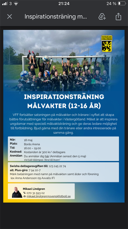 Träning och inspiration!! Gå in på VFF:s hemsida och utbildning... F15 födda 10 27 apr 0kommentarer