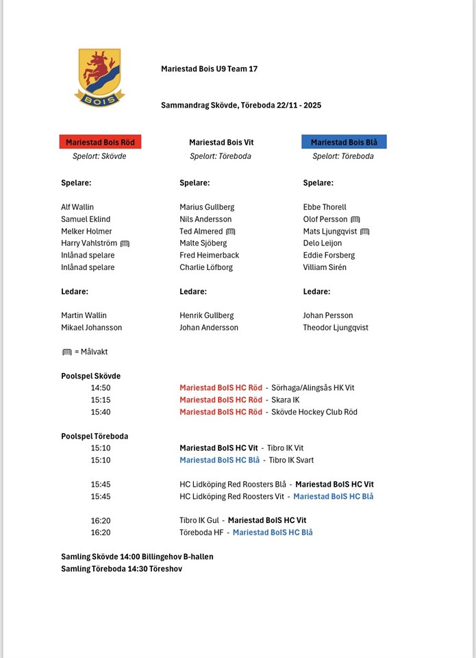 Fyll i din e-postadress för gratis uppdateringar om Mariestad BoIS Hockey Ungdom Team 17