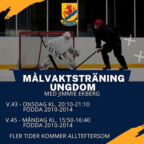 Vecka 43 kör vi igång med målvaktsträningar! Jimmie Ekberg kommer att hålla i dessa.
