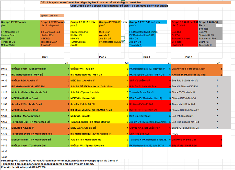 Hej. Här kommer lagindelningen till Julacupen. Samling vi Julas klubbstuga 09.30. Kom ombytta matchtröjor får ni på plats. /Ledarna MBK Blå / Theo Adam Einar Elton Hjalmar Mats Melker MBK Röd /Alexander Anton Fred Eddie Elias Elvin Helmer MBK Vit / Rebecca & Tobias Alexander Aston Marius Milton Nils Wilgot P8 f.2017 5 sep 2024 0kommentarer