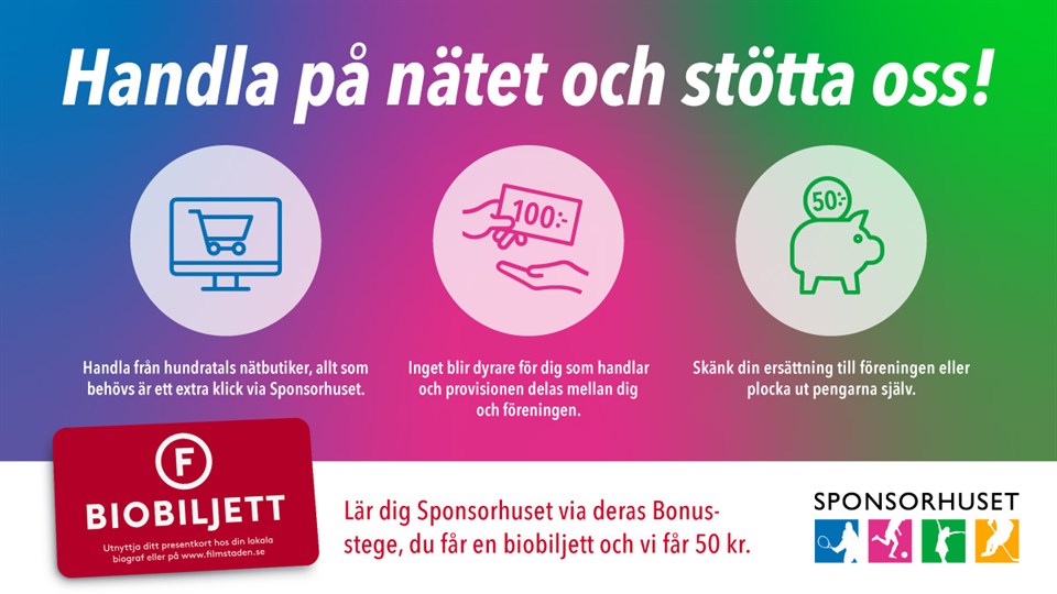 Hej! Nu finns Mariestads BOIS FF anslutna till Sponsorhuset. Där kan du handla från över 600 kända nätbutiker. Varje köp som du gör ger pengar både till dig själv och Mariestads BOIS FF . Nu har Sponsorhuset samlat allt du behöver veta för att komma igång i deras Bonusstege. Går du igenom stegen så stödjer du Mariestads BOIS FF med 50 kr och du själv får en biobiljett.. Bättre än så blir det inte! Alla kan komma igång med Bonusstegen även du som redan är medlem på Sponsorhuset. Klicka här och sprid länken till dina vänner och bekanta. Sponsorhuset