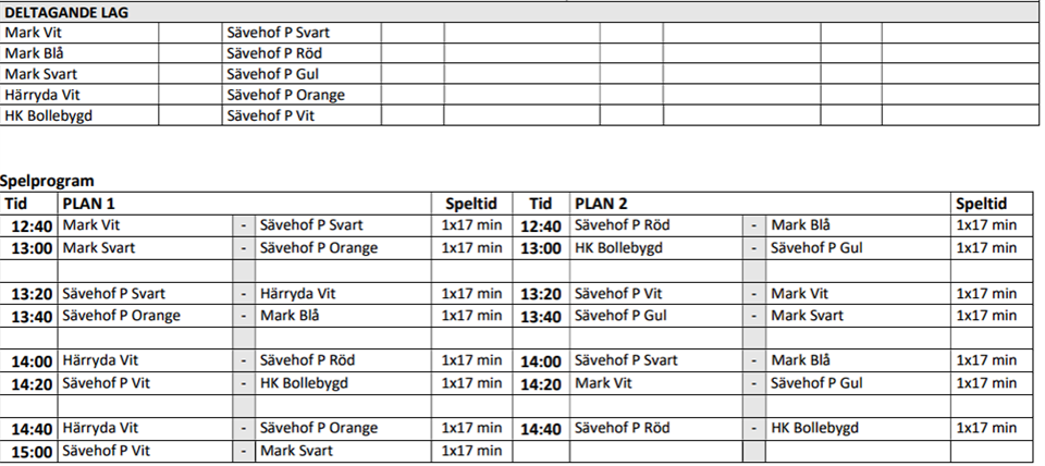 | IK Sävehof PF Röd (borta) | 9 nov, 12:35 |