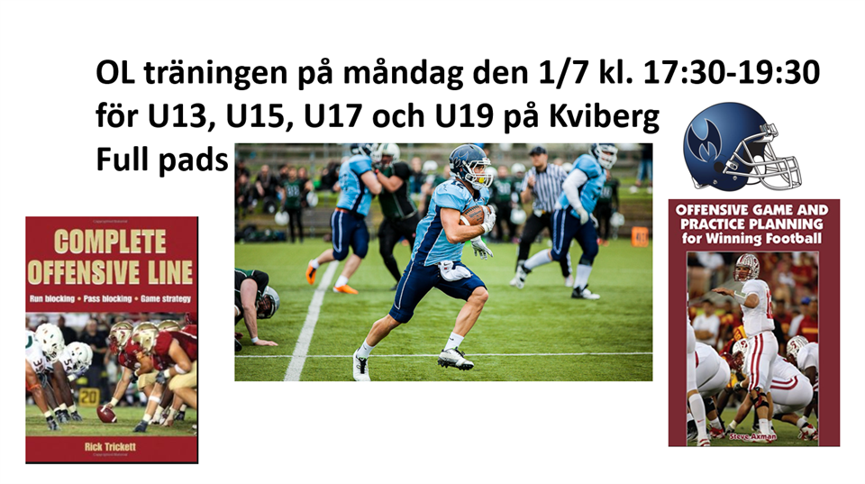 OL träningen på måndag den 1/7 kl. 17:30-19:30 för U13, U15, U17 och U19 på Kviberg Full pads Vi tränar på gräset bredvid plan 5. Anmäl dig i kallelsen på Laget.se