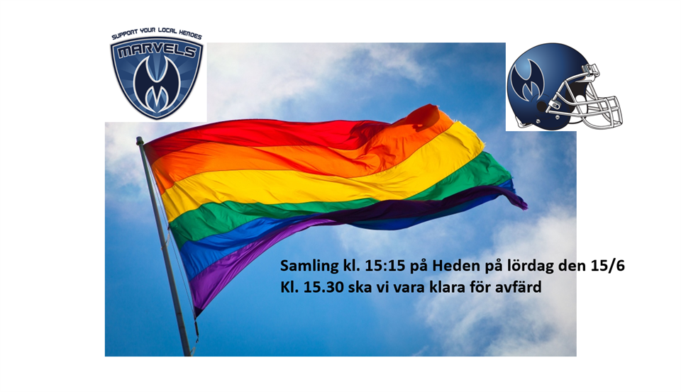 Dags för prideparad! På paraddagen lördag den 15e juni kommer Göteborg Marvels visa att vi står för allas rättigheter! Samling på Heden kl. 15:15. Paraden kommer gå från Götaplatsen kl 16.00. Samling 15.30 i fålla E. Paraden kommer gå från Götaplatsen förbi Brunnsparken och sedan in till Trädgårdsföreningen via Centralstationen. Vi kommer i den mån det går med anordning av matchkläder att gå i fotbollsskydd. Om man inte har några fotbollsskydd eller om man vill ta med sig någon utomstående i paraden, går det också bra. Då är det bäst om de har supportergear på sig så man ser att de tillhör oss i Marvels. För att vi i Göteborg Marvels skall kunna visa upp oss på bästa möjliga sätt, behöver vi fylla i deltagarlistan: Kom så visar vi vad vi står för! Mvh/ Sabina Pedersen Jonsson