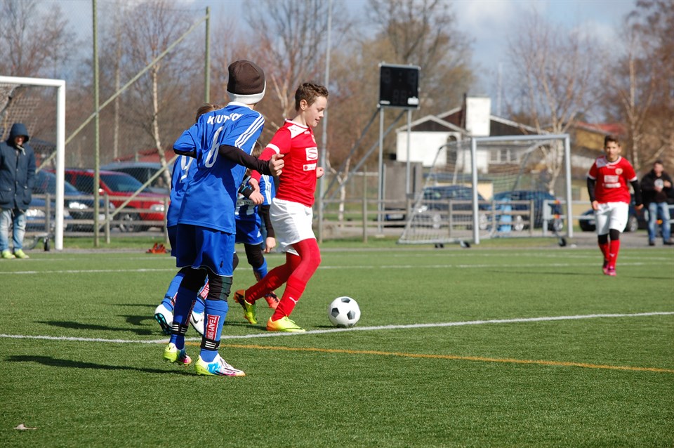 Återigen en stekhet dag vid konstgräsplanen i Emmaboda! På söndagen var det 11-års-killarna som avslutade årets Masse & Mulle Cup. Det blev en blekingefinal mellan Rödeby AIF och Nättraby GoIF, sedan Rödeby utklassat hemmalaget Emmaboda komb i sin semifinal och medan Nättrabys semil fick avgöras på straffar mot Östers IF. I A-finalen tog Nättraby ledningen, men "Blekinges blåvitt" vände och vann med 4-1. Slutställning P12 (P03: 1) Rödeby AIF (Karlskrona) 2) Nättraby GoIF (Karlskrona) 3) Östers IF (Växjö) 3) Emmaboda komb. Alla resultat finns i vänsterspalten! Tack för i år alla, nästa år i april kör vi Masse & Mulle Cup för 9:e året i rad och vi hoppas verkligen på samma fina vårväder som denna helgen!