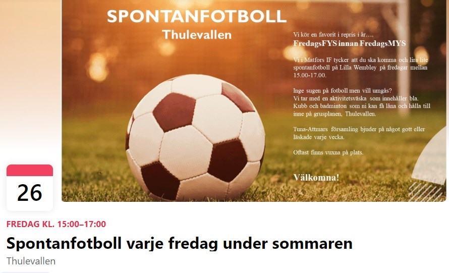 • Spontanfotboll fredagar kl 15