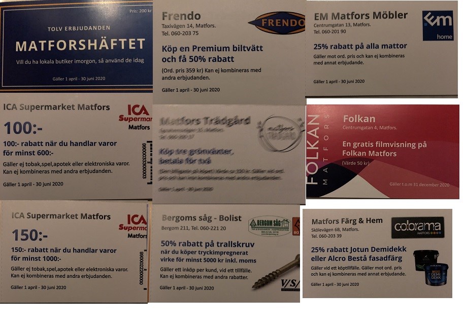 Mer info om försäljning kommer på föräldramötet nästa Tisdag, men vi kan redan nu berätta att vi säljer ett Matforshäfte som är nytt. De uppskattade kupongerna på ICA Matfors finns fortfarande kvar men kompletteras med lite annat, enligt bifogad bild. För Ica Matfors gäller att det är 3 kuponger med 100kr rabatt och 2 kuponger med 150kr rabatt. Övriga är en kupong per erbjudande. Ville bara lägga ut info redan nu, om någon vill vara snabb och sälja innan de andra lagen börjar sälja. Häftena delas ut på tisdagens föräldramöte och det är 3 per spelare som gäller. Giltighetstiden är 1:a April-30:e Juni. Vi har ett fåtal extra häften och kan be att få några fler om vi vill. 30 kr per häfte får vi i P11 behålla själva i år. /Daniel P-11 10 mar 2020 2kommentarer