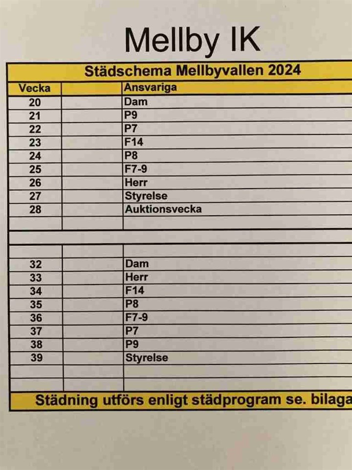Dena vecka (21) har P9 städvecka. Det brukar gå till så att man kör ett röj samtidigt som barnen tränar och är inte särskilt ansträngande. Förslagsvis tömmer vi papperskorgarna idag och städar på onsdag. Nästa städvecka är v.38, så vi hoppas på bra uppslutning dessa veckor från föräldrar så kommer det att gå fort. P10 20 maj 2024 0kommentarer
