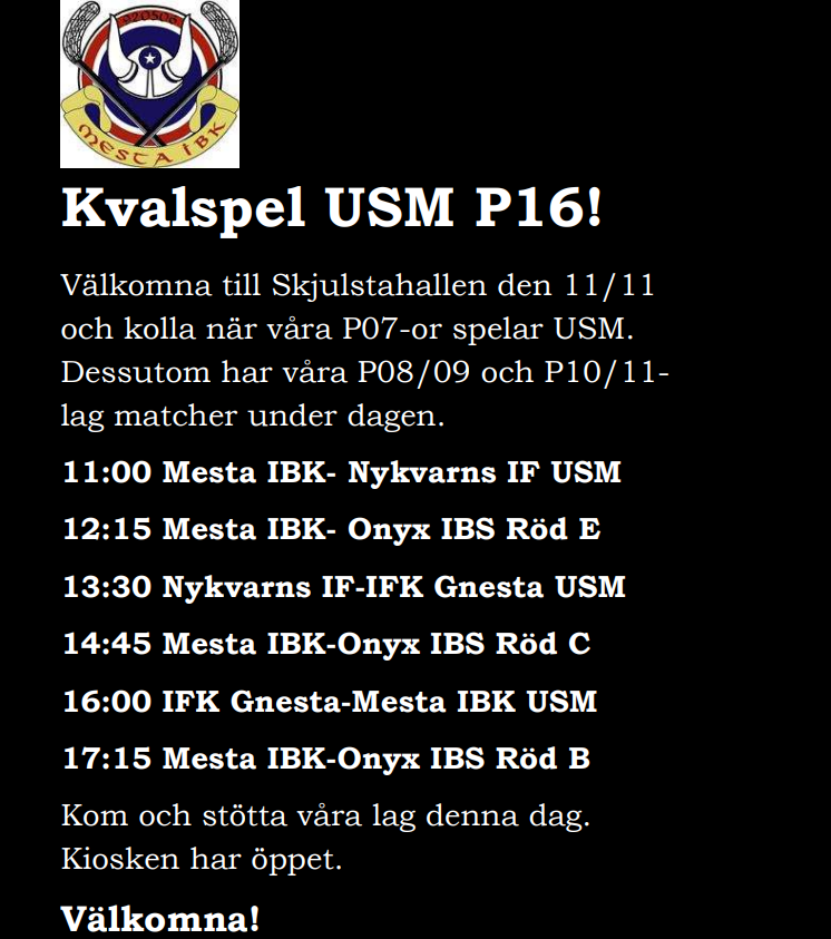 USM och seriematcher hela dagen i Skjulsta 11 november!