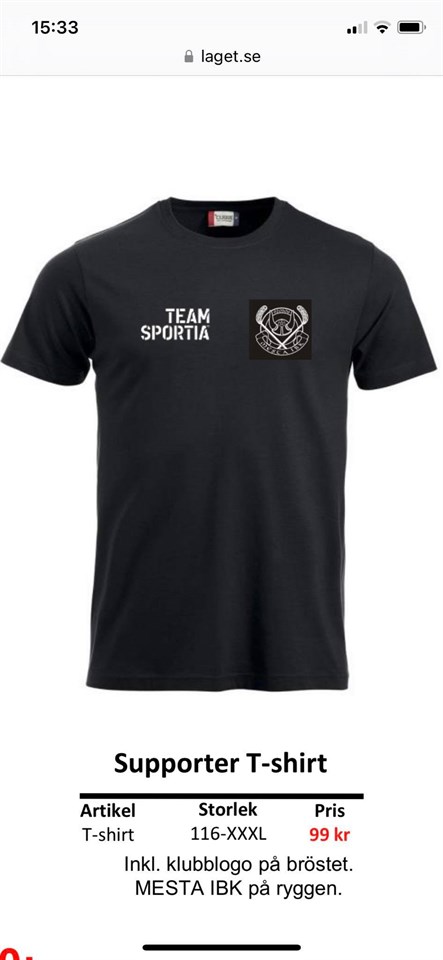 Nu finns det möjlighet för föräldrar,syskon och övrig släkt att köpa Mesta IBK supporter T-shirt. Vore kul om så många som möjligt köper och har på sig när de sitter på läktaren när det är match/cup och hejar på laget. Så skriv i kommentar fältet antal och storlek senast 2 oktober. Kostar 99 kr. Så gör vi en beställning efter detta. Storlekar 116-XXXL. Vi meddelar här när dessa är klara att hämta och betala på Team Spotia.