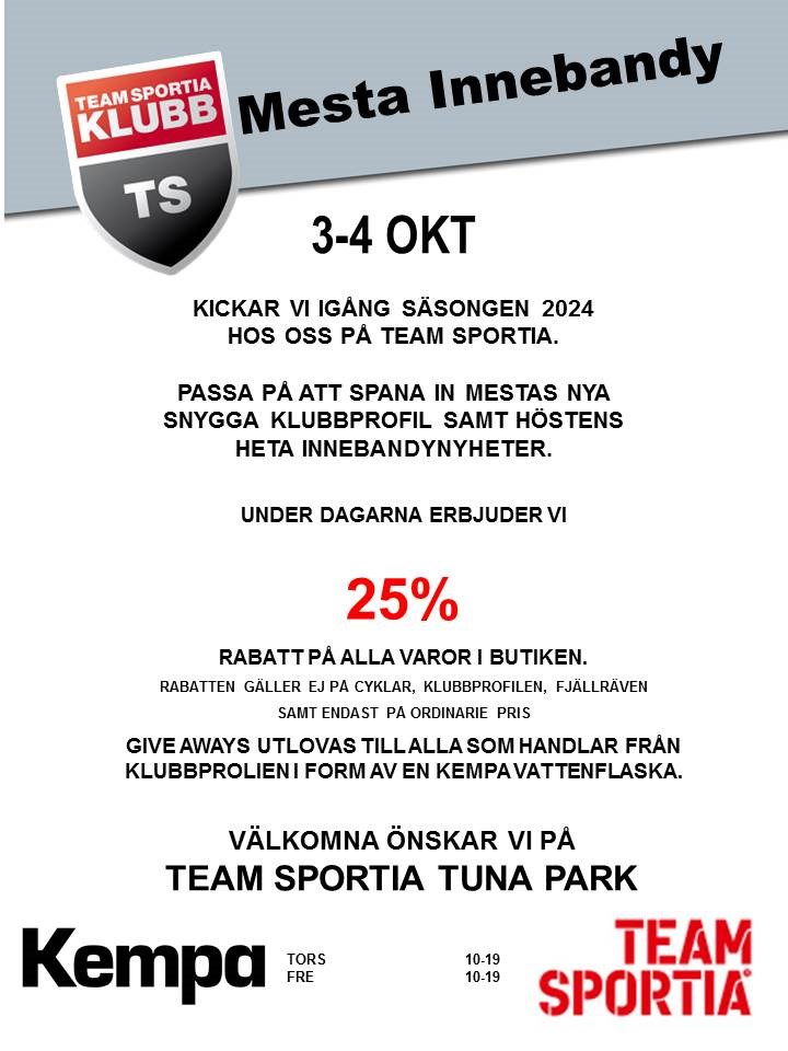 Nu kan ni passa på att besöka Team Sportia och prova/beställa Mesta Ibks klubbkläder, även rabatt på andra varor i butiken. /Styrelsen 10/11-laget 25 sep 2024 0kommentarer