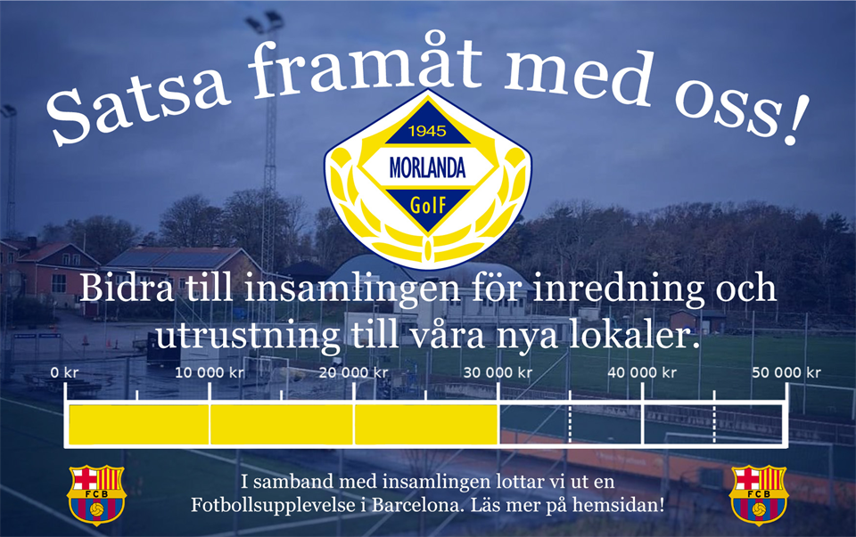 Vi bygger om och satsar på nutidens och framtidens idrottande barn och ungdomar, vuxna och pensionärer. Fotbollsspelare, gymnaster och motionärer. Med mer verksamhetsanpassade lokaler och trivsammare sociala ytor hoppas vi att Glimmaråsen ska ta ytterliggare ett kliv till att bli den naturliga mötesplats och samlingspunkt vi drömmer om. Nu vill vi ha med Er! Ni som är aktiva i föreningen, föräldrar till aktiva, supportrar, medlemmar eller bara Ellösbor som är positiva till vår utveckling för verksamheten och för samhället. Eller varför inte du som spenderar somrarna här på orten och uppskattar en motionsslinga och ett utegym. Föreningen finns för oss alla tillsammans och vi driver den också tillsammans. Swisha minst 300kr för att få ditt namn på tavla i klubbstugan samt vara med i utlottningen av en Fotbollsupplevelse i Barcelona med matchbiljetter till La Liga och hotell för två personer under våren. Vinnare dras och presenteras på årsmötet den 28 februari. Målsättning 50 000kr Alla bidrag till insamlingen är betydelsefulla, stora som små! Swisha in ditt bidrag här! Eller på nummer 1230467548 Vill du bidra på annat sätt kontakta oss på info@morlandagoif.se, kanske har du saker att skänka som passar oss eller så är du ett företag som vill sponsra. Ändamål med insamlingen Summan för insamlingen avser att utnyttjas till bord och stolar för samlingar och möten, anpassning av kök för att vi ska ha goda förutsättningar att bereda och servera måltider och bedriva kiosk, köksutrustning, utrustning för möten och utbildningar med mera. Vi hoppas Du vill vara med och stötta vår satsning! Förutsättningar för utlottningen av Fotbollspaketet Paketet består av Matchbiljetter och två hotellnätter för två personer till av vinnaren vald match säsongen 2026 (Ej mot Real Madrid eller Athletico Madrid) Vinnare dras och presenteras på årsmötet den 28 februari. Transport till Barcelona ingår ej i paketet. 300kr ger en lott, 600kr 2st, 900kr 3st och så vidare.