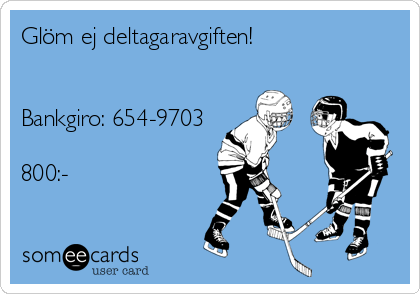 Det börjar bli dax att betala sin deltagaravgift som vi på årsmötet beslöt att höja till 800 spänn. Denna ska sättas in på BG 654-9703 (Glöm inte att skriva namn) Vidare skall samtliga betala medlemsskap i Mörrums Gois IK. Detta görs enklast på kansliet till Linda då måste ni uppge att ni är aktiva i vets. Detta kostar 200 spänn per man. Finns även de som är sponsorer och betalar sin medlemsavgift den vägen. Då måste ni uppge att ni är aktiva i vets!! Alla spelare över 35 år skall ha en sk B-licens. Det ingår även en försäkring i detta. En del av er har tyvärr tvingats att utnyttja denna.
