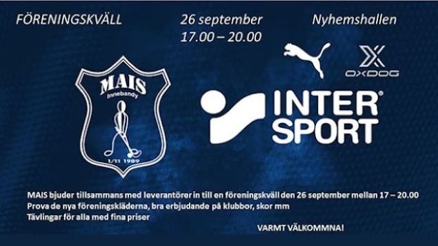På Torsdag 26/9 kl 17.00-20.00 är det klubbkväll i Nyhemshallen. Är ni intresserade av föreningskläder så kommer det finnas för utprovning och beställning. Det kommer även vara rabatterade priser på klubbor och skor. Mullsjö AIS har nytt samarbetsavtal med Intersport. Har ni inte möjlighet att delta vid klubbkvällen så finns det möjlighet att besöka butiken på Asecs eller beställa online. För att få rabatterade priser online behöver du vara medlem på Intersport och vara inloggad på sidan. Träningskläder Intersport P Grön (P18) 22 sep 2024 0kommentarer