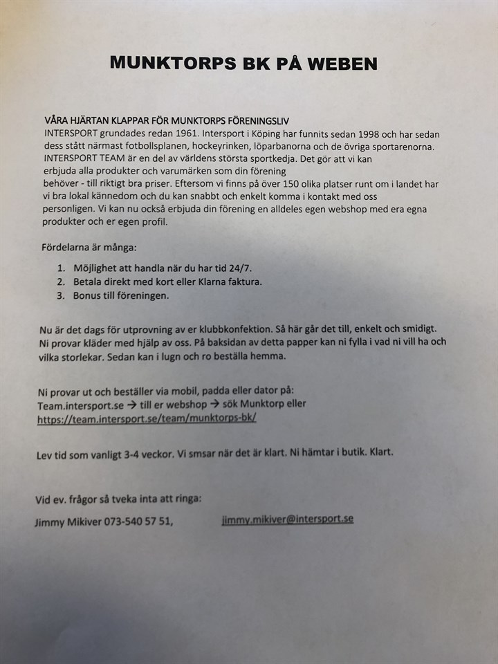 Nytt för i år är att ni lägger beställning av kläder på nätet. Bifogar en bild med mer information. För er som inte hade möjlighet att komma och prova kläder på Tallåsen finns möjlighet att prova kläder på Intersport i Köping: mån-tors 07-16 o fre 07-14 Påminner om att vårat lag i år blir sponsrade med shorts och strumpor av klubben, meddela dessa storlekar till Anna eller Jens senast 30 april. PF 11-12 8 apr 2019 2kommentarer