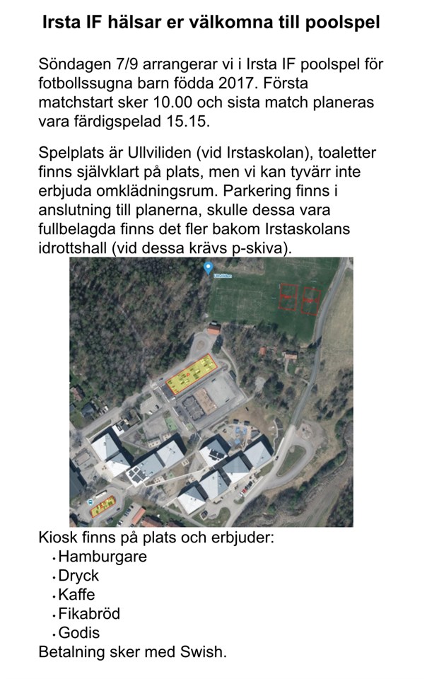 OchSöndag den 31/8 kl 15.00 är det A-lagsmatch på Tallåsen och Lag 17 är kiosk och bollkalle ansvariga. Vi behöver ca 7 frivilliga bollkallar samt en eller två ansvariga vuxna vid plan för bollkallarna. Kommer att komma en kallelse för bollkalle. Kiosk ansvariga denna match är:Viggo, Svante och Ivar. Kan man inte så ansvarar man för att fråga någon annan i laget. Kiosk ansvariga bakar ( ca två plåtar av något smarrigt brukar vara bra. samt står i kiosken PF 17 26 aug 2025 8kommentarer
