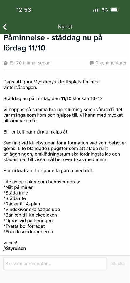 Klicka på bekräftelselänken i det mejl vi skickat dig för att börja ta emot uppdateringar från Myckleby IK F-18/19.