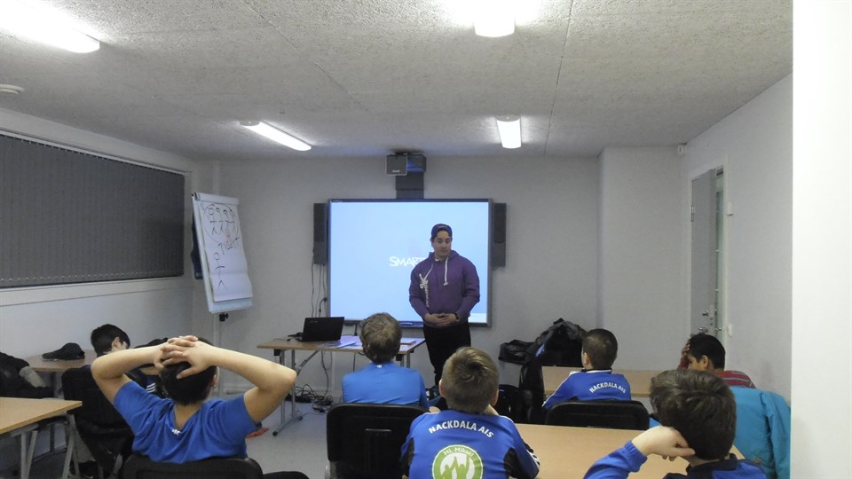 Idag fick vi celebert besök av Rickard " Muskelprinsen " Alarcon på träningen. Rickard är fd elit spelare inom fotboll men även proffesionell Bodybuilder samt personlig tränare. Under ca 60 minuter av dagens träning så fick våra killar höra en ny röst nere i Tumba idrottshus i konferenslokalen.(Stort tack till vaktmästarna för en fanastisk service!) . Då våra killar just nu börjar gå in i puberteten så känner vi ledare att det är viktigt att grabbarna förstår vikten av att ta hand om sin kropp detta i syfte att utvecklas ytterligare som fotbollspelare. Rickard pratade en hel del om kost , vikten av att äta rätt vid rätt tidpunt, men också vikten av att träna på rätt sätt i syfte att undvika onödiga skador etc.Arton killar fanns på plats idag som lyssnade lyhört riktigt kul! Tyckte Rickard fick en positiv respons av grabbarna i Nais P-03. Efter denna korta men mycket intressanta föreläsning var det dags att omsätta teorin i praktik som man brukar säga. Iväg med hela gänget till gymmet ca 100 meter bort för praktisk genomgång. (En rehabtränande handbollspelare från IFK Tumba såg något överasskad ut när mer än 20 pers plötsligt väller in i gymmet....) Rickard visade grabbarna flertalet riktigt bra kordinationsövningar med olika redskap. Samtliga spelare i Nais P-03 som närvarade fick utföra övningarna under Rickard överinseende med gott resultat. En ny träning för våra killar , med största sannolikhet otrolig värdefull om man ser till den långsiktiga utvecklingen . Tanken med det hela är att vi skall börja praktisera detta nya upplägg framförallt till hösten efter Sanktan säsongen förhoppningsvis i okt-nov månad under överinseende av Rickard där övningarna är balanserade att vara nyttiga men också roliga. Nais P-03 tackar härmed Rickard för en mycket uppskattad träningskväll med våra killar. Skall försöka uppdatera bildgalleriet inom kort men även försöka hinna med att rapportera från våra träningsmatcher på elvamanna. Vid pennan Dante Caggiani Nais P-03